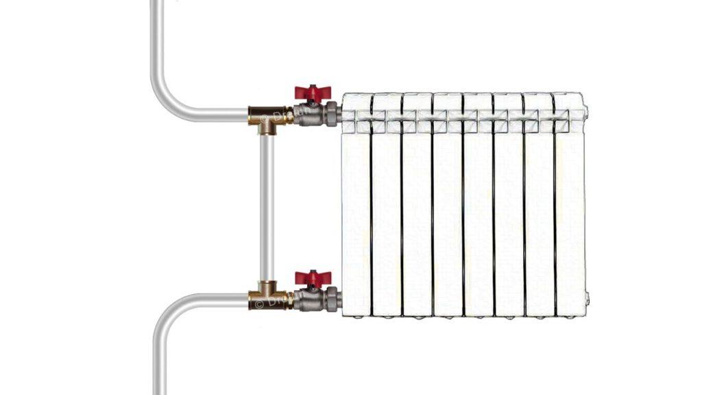Важно также соотношение входа и выхода вентиля в радиаторе, их взаимное расположение