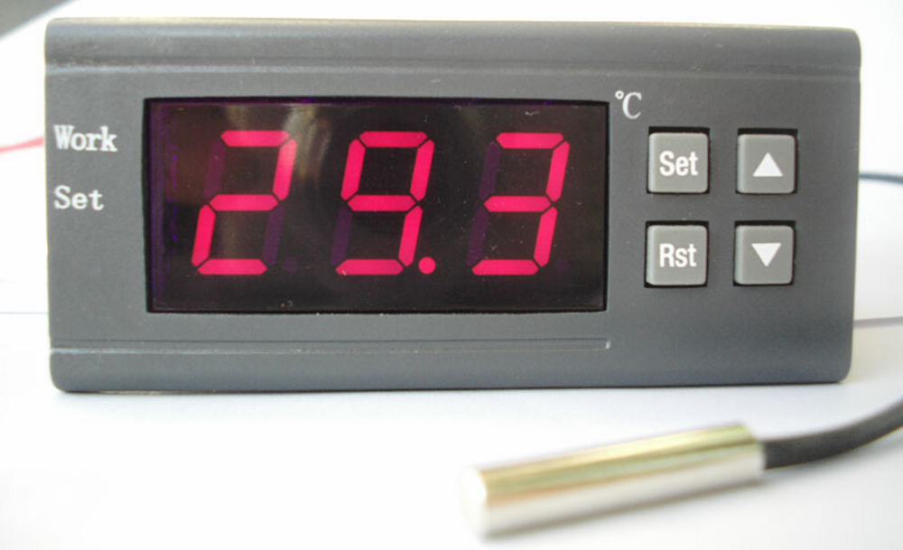 Терморегулятор, иногда называемый термостатом (что не совсем верно, термостатом можно назвать весь инкубатор целиком), служит для поддержания заданной температуры путем включения и выключения нагревателя в зависимости от заданной температуры. Температура определяется при помощи датчика.