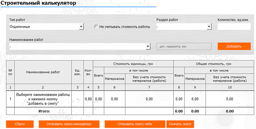 Калькулятор помогает оценить стоимость работИсточник www.strojmag.ua