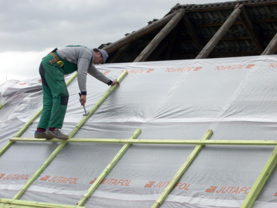 - Первым действием обычно является укладка наружного слоя. Чаще всего используют диффузионные мембраныили подобные им материалы, позволяющие выводиться остаточному водяному пару из теплоизолятора.