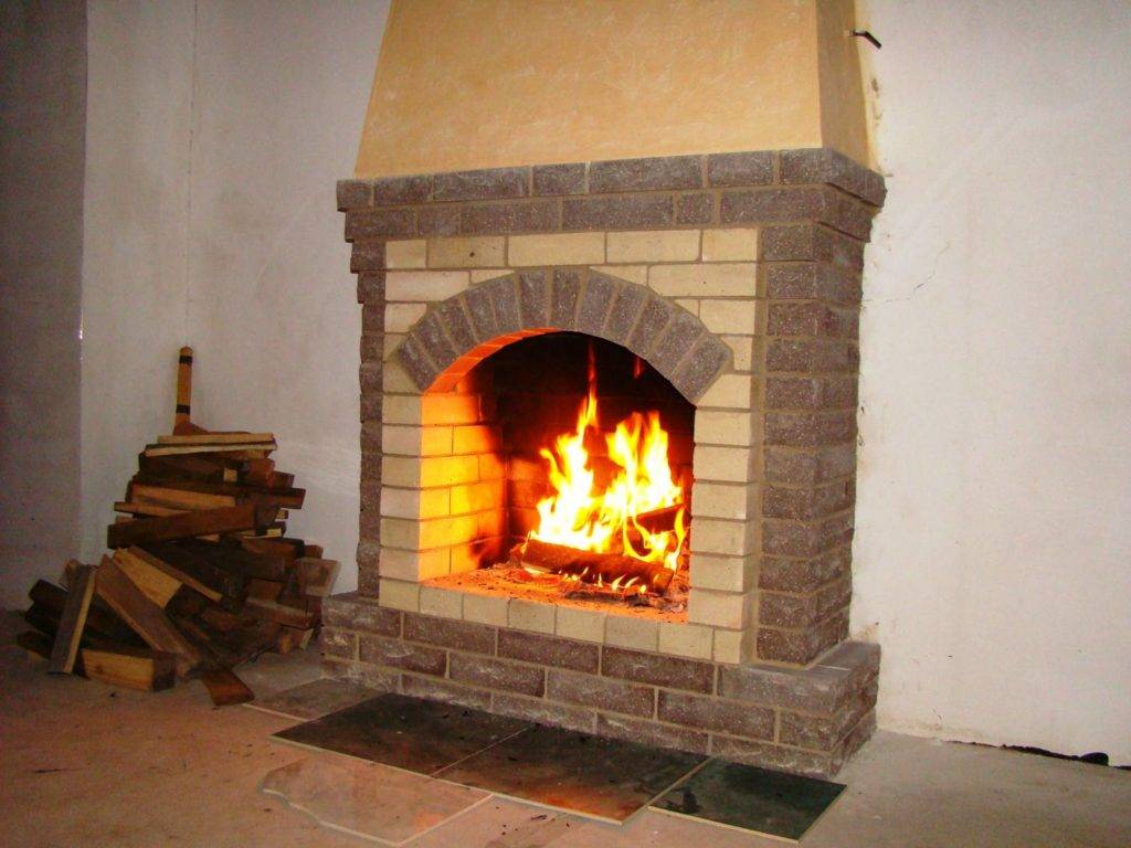 Камин из кирпича – это сборная конструкция на фундаменте. Для кладки подходит стандартный кирпич, а для обустройства топки применяется огнеупорный шамотный материал.