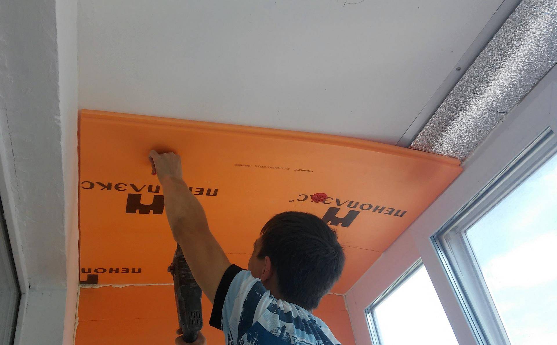 Утепление потолка на балконе не относится к слишком сложным видам работ, потому при наличии определенных навыков его вполне можно сделать самостоятельно. Утепление потолка балкона или лоджии будем производить с помощью пеноплекса в тандеме с пенофолом. Данный способ является оптимальным для утепления потолка и даже стен балкона.
