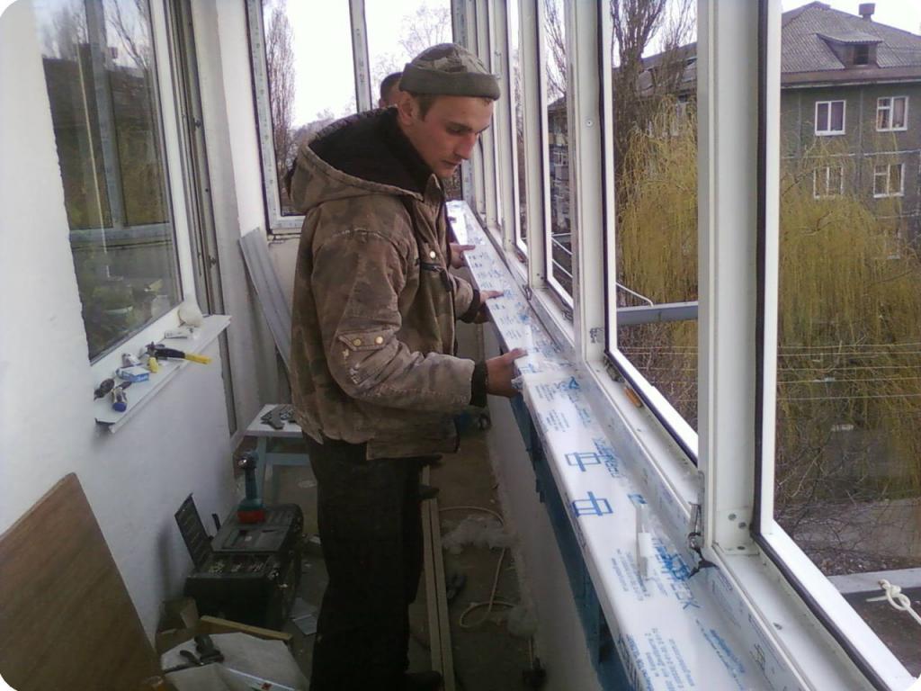 - Заделка всех щелей между стенами и рамой/парапетом, остекление.