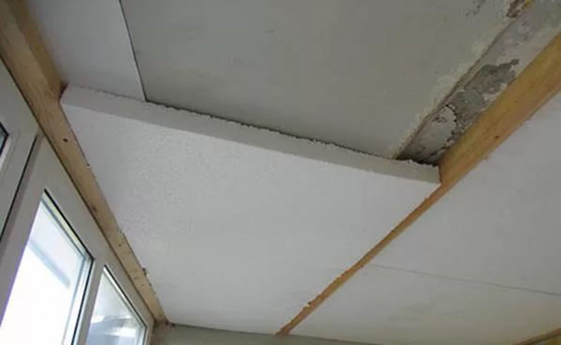 Демонстрация того, как можно утеплить потолок на лоджии пеноплексом, прикрепляя его к поверхности на клей и дюбели