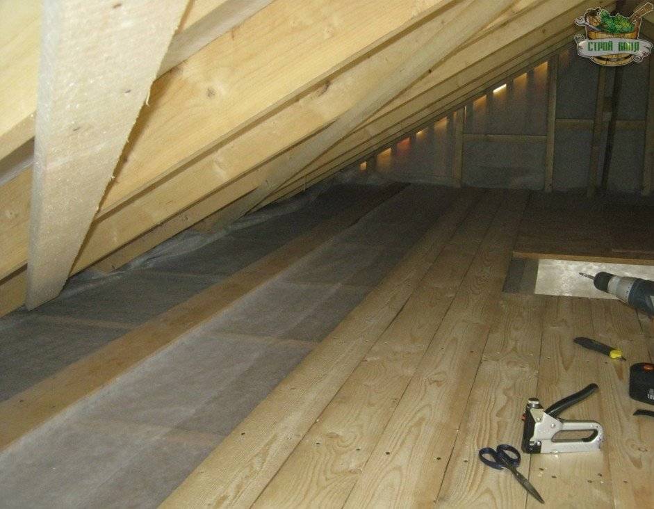 Новый утеплитель закрывают парозащитной мембраной, зашивают досками, листами гипсокартона.