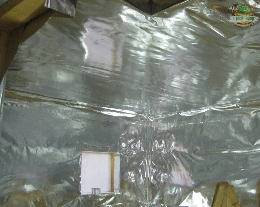 В качестве пароизоляции для бань может быть использована алюминиевая фольга, которая не только уберегает утеплитель от выпадения конденсата, но и в немалой степени отражает тепло. Чтобы обеспечить целостность пароизоляции, все швы между листами фольги стоит проклеить металлизированным скотчем.
