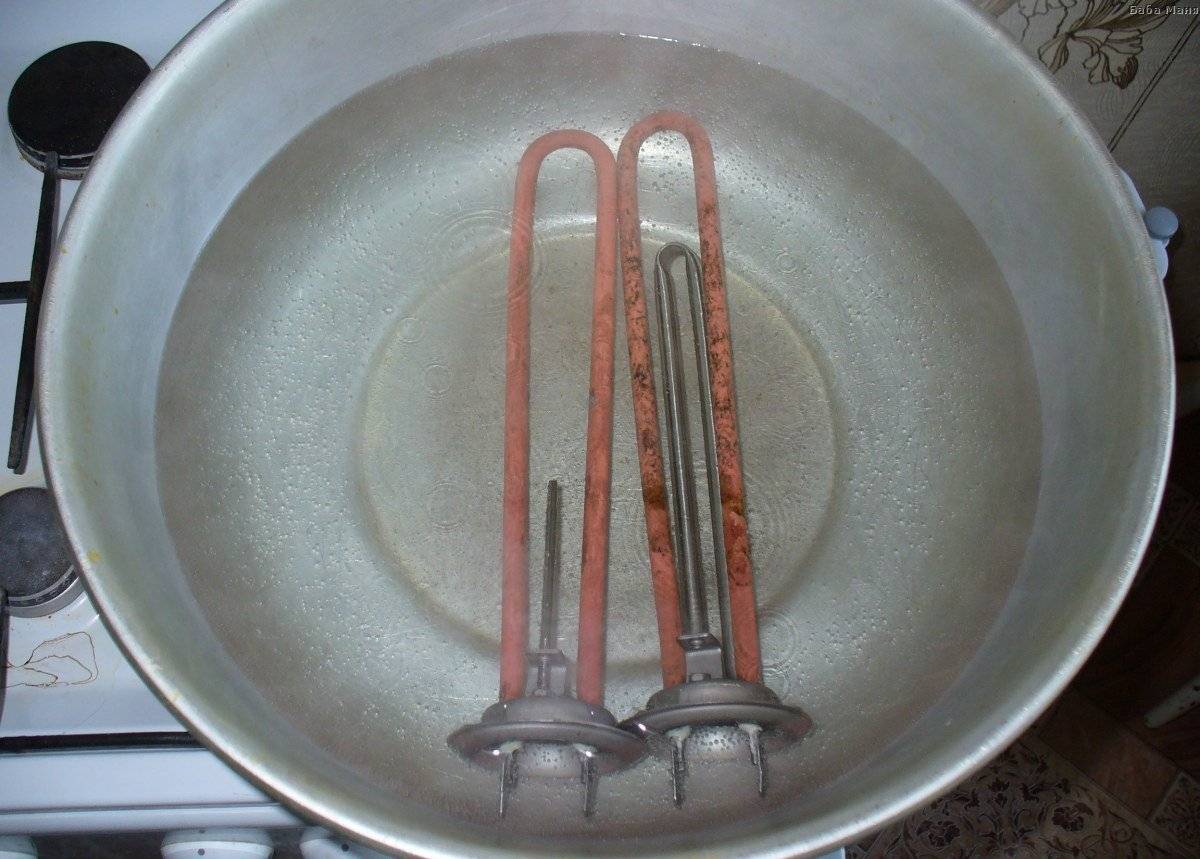 - Тэны лучше сначала аккуратно очистить деревянным скребком от больших отложений и замочить в растворе лимонной кислоты, для удаления остатков, на 24 часа.
