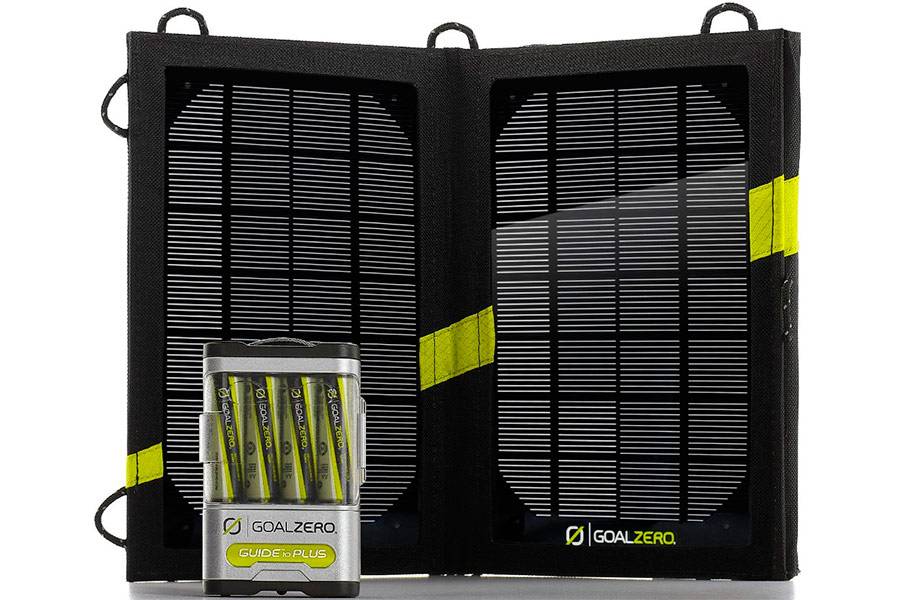 Всем должно быть известно, что миниатюрная солнечная батарея способна дать электроэнергию только калькулятору. Если же нужно зарядить портативный аккумулятор, то потребуется уже достаточно большая солнечная панель. И именно такой располагает изделие под названием Goal Zero Guide 10 Plus Solar Kit. Уже по его наименованию понятно, что солнечная батарея поставляется отдельно. Она представляет собой что-то вроде очень крупного чехла. Её нужно расстелить где-нибудь на поляне, после чего она начнет перерабатывать солнечную энергию, заряжая ею портативный аккумулятор или подключенный к нему гаджет.