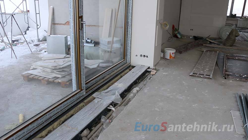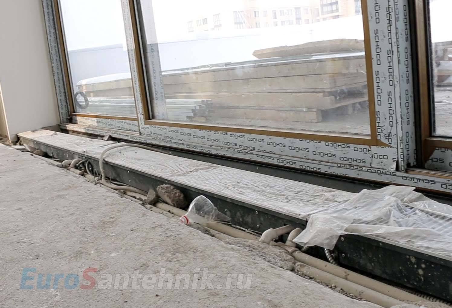 Устройство внутрипольного водяного конвектора отопления
