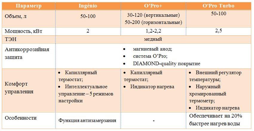 Многолетнее изготовление бойлеров привело к появлению схожего функционала во всех продуктах: