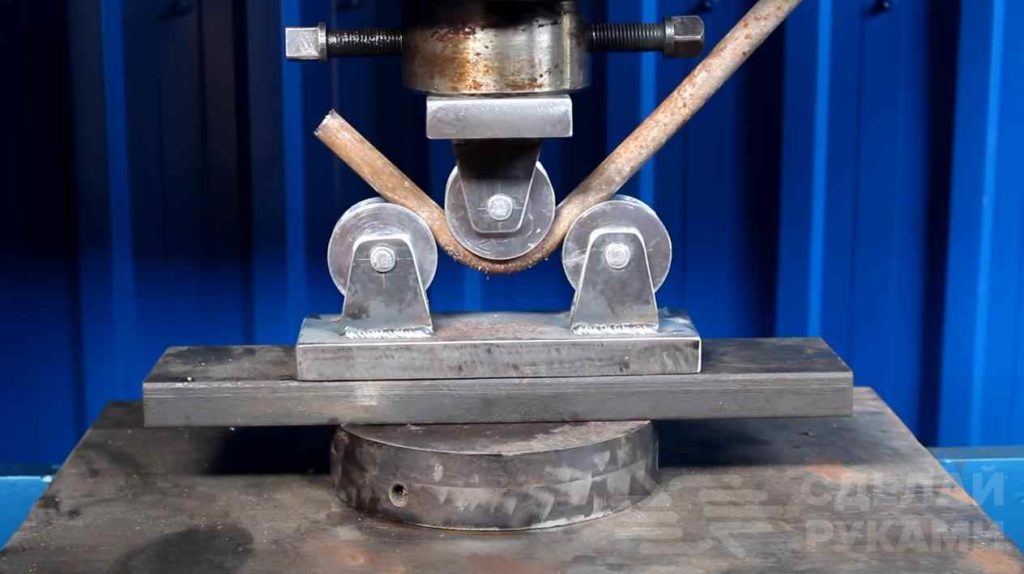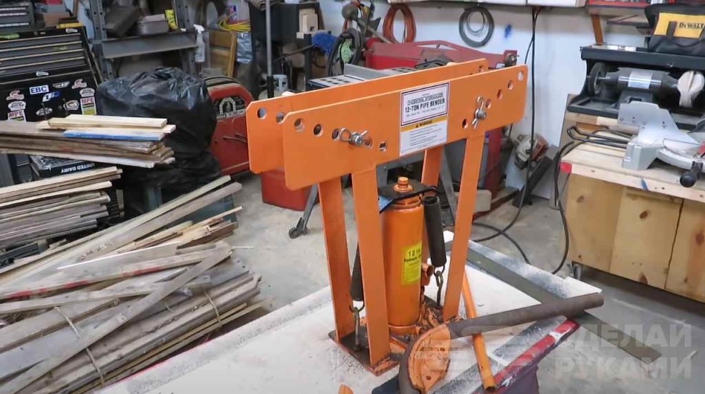 Как самостоятельно сделать трубогиб своими руками, который работает вертикально, вы можете прочитать в обзорной статье. В таких устройствах как правило использует гидравлический привод — из автомобильного домкрата.