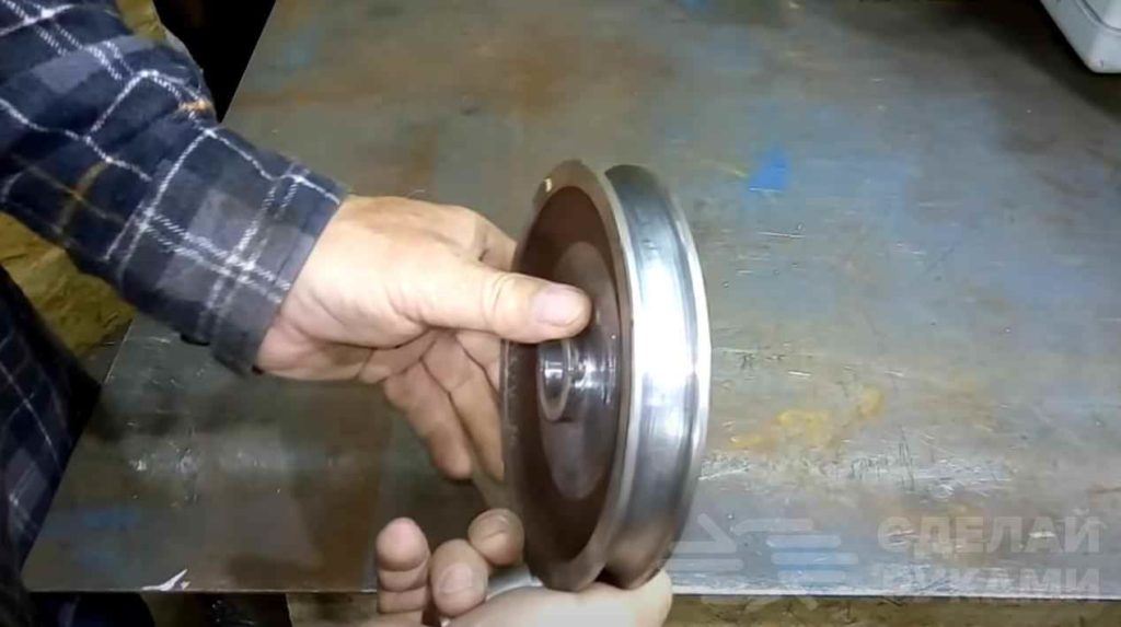 В роли пуансона можно использовать разрезанные пополам по диаметру старые шкивы. Такая операция довольно трудоемкая, но выполнима даже в домашних условиях. Найти шкив подходящего диаметра и ширины канавки можно на рынках, в магазинах, интернете или даже в пунктах приема металлолома. Цена их, как правило, не очень высокая и по сравнению с домкратом очень даже приемлема.
