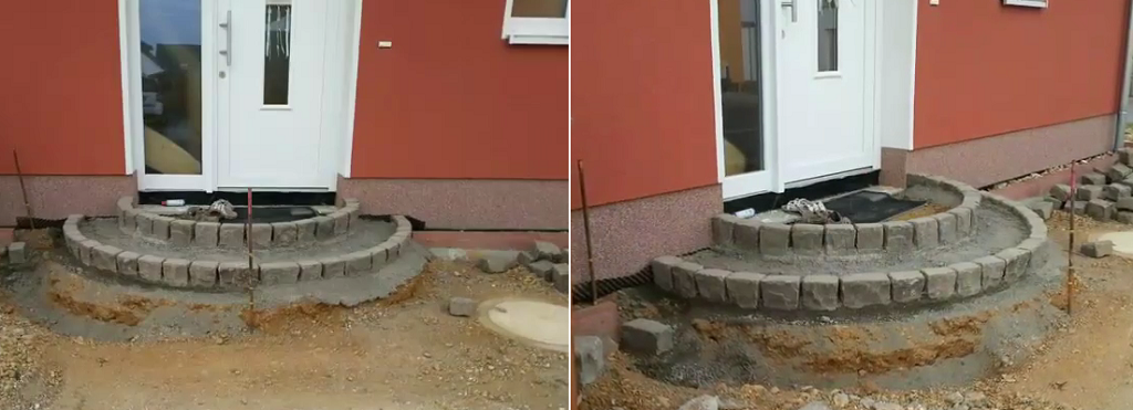 Почему кирпичи лучше класть на ребро? За счет такого метода окружность более ровная, степень сцепления отдельных кирпичей увеличивается, ступени становятся более прочными и красивыми. Если в дальнейшем планируется отделывать крыльцо керамической плиткой, то кирпичи можно положить в обыкновенном положении, но обязательно тычком наружу.